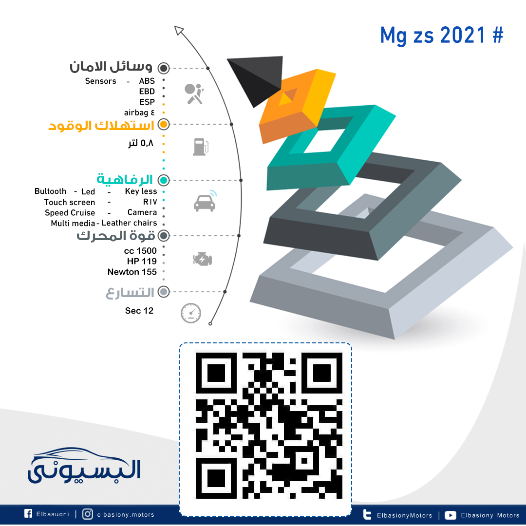 مواصفات السيارة | 119HP 155 Newton Acc 12 Fuel economy 5.8L Fuel tank 48 L Bag cap 485 L ABS EBD ESP 4 airbag HLA TCS Max Speed 200 Length 2.56 Wight 1250 Camera Touch screen Sensors Led Speed Cruise R17 |