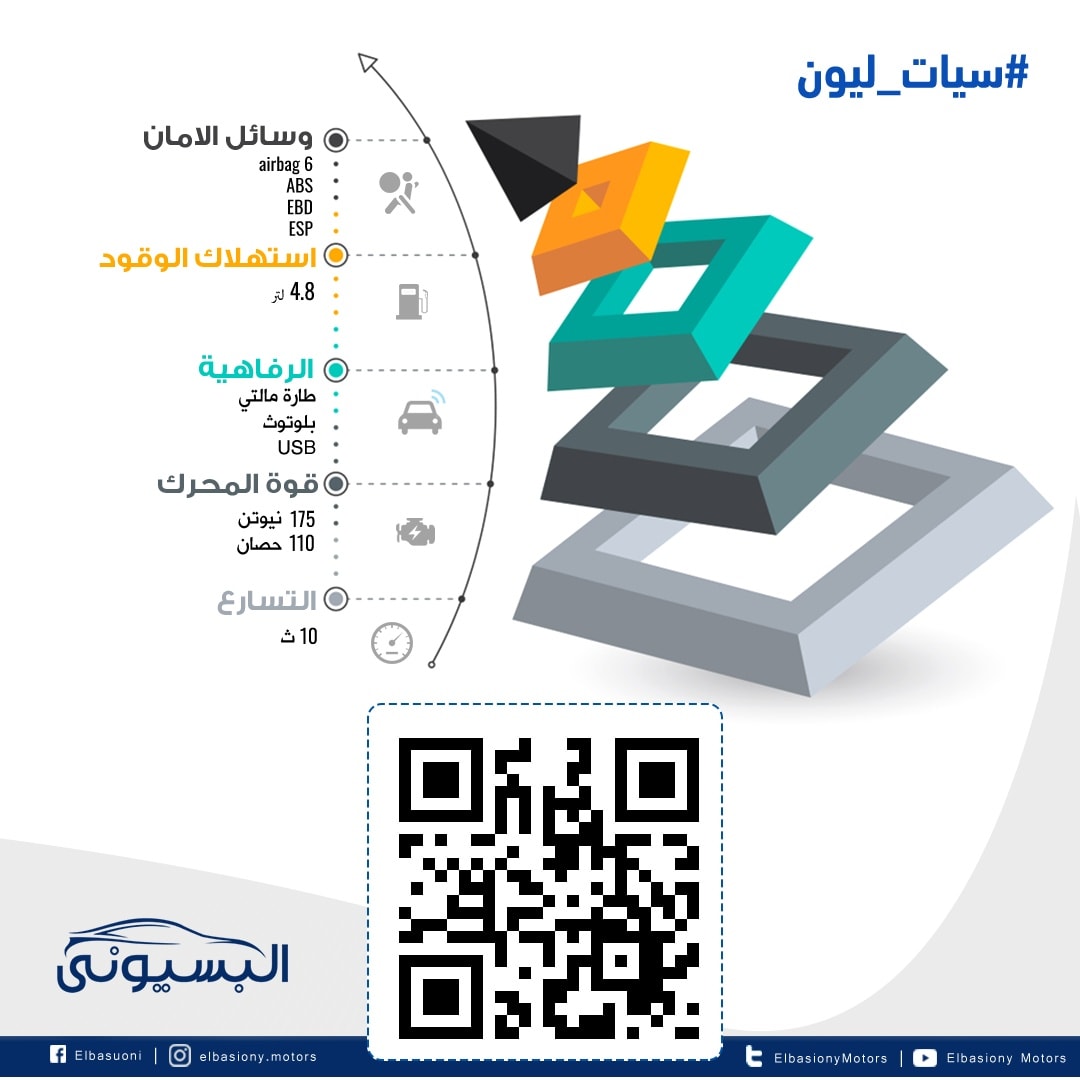 مواصفات السيارة | سيات ليون 2015 100 الف كليو فابريكا بالكامل الفءة الاولى 1200 تربو 110 حصان 175 نيوتن استهلاك الوقود 4.8 لتر التسارع 10 ث خزان الوقود 45 لتر فتيس DSG |